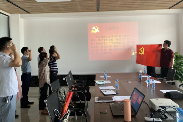 接着,大家来到拓又达公司会议室,进行集中学习:大家在党旗下重温了入党誓词;合唱了红色歌曲《红军渡 长征源》;传达学习了在习近平总书记视察江西一周年之际,刘奇书记赴赣州调研有关精神;市“两会精神”和稀土集团纪委《关于对稀土集团公司贯彻落实习近平总书记视察赣州稀土产业重要指示精神各项工作任务进行督查工作的方案》精神,并开展了讨论交流。